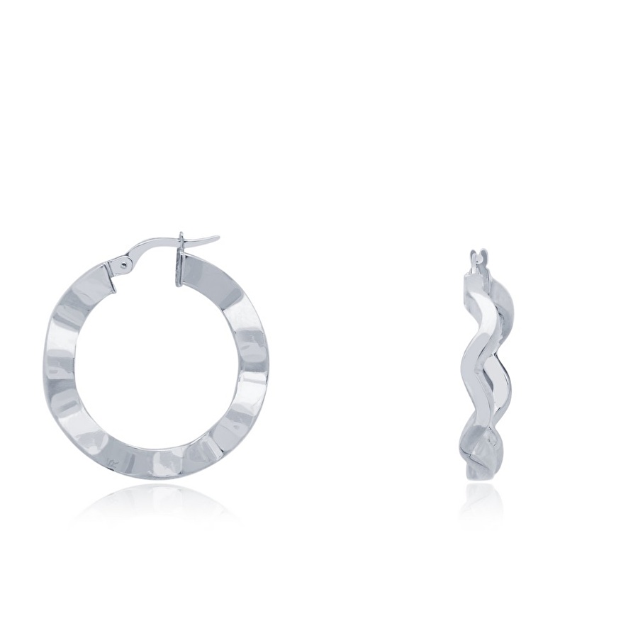 14 Ayar Beyaz Altın Dalga Halka Küpe